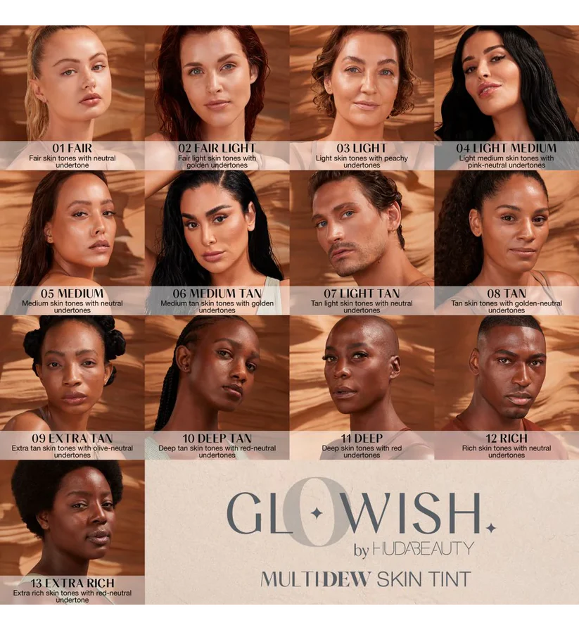 With the Huda Beauty GloWish Skin Tint Foundation, your skin looks healthy, radiant, and beautifully natural all day long.
